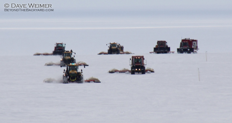 We were on glare ice at that point and had trouble getting the tractors going, they kept spinning out. Also our bladders were swinging wildly back and forth and the tractors wanted to follow the bladders, so we snaked up the hill, ever so slowly.
