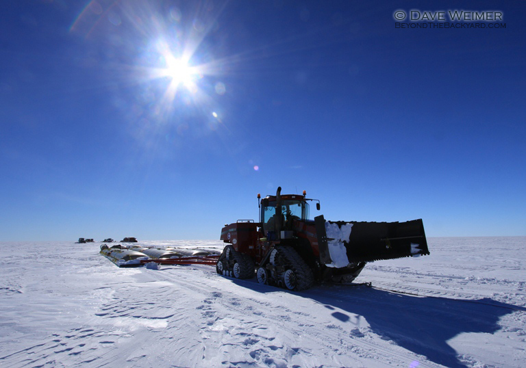 It took quite a bit of blading and a couple tractors to pull this puppy out. There are 8 tanks, all for emergency Twin Otter resupply, none of them had been used since we placed them out here a year ago.