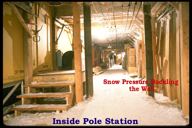 The station was built on the surface of the snow in 1957 but was soon buried under drifts. Over the years the snow accumulated and its tremendous weight would become a problem.