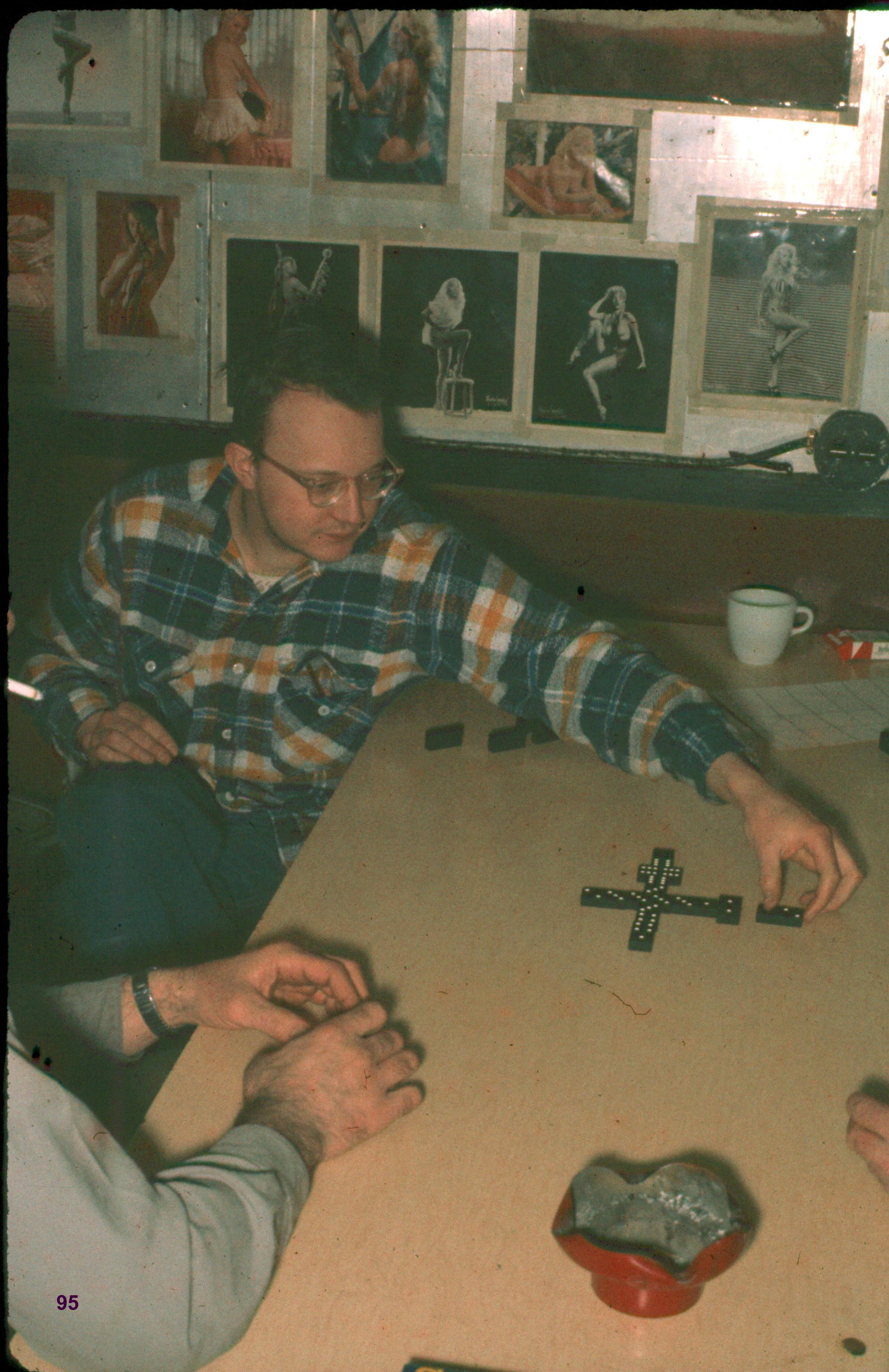 Ron Witalis, U.S. Weather Bureau. Notice the pin up girls on the wall.