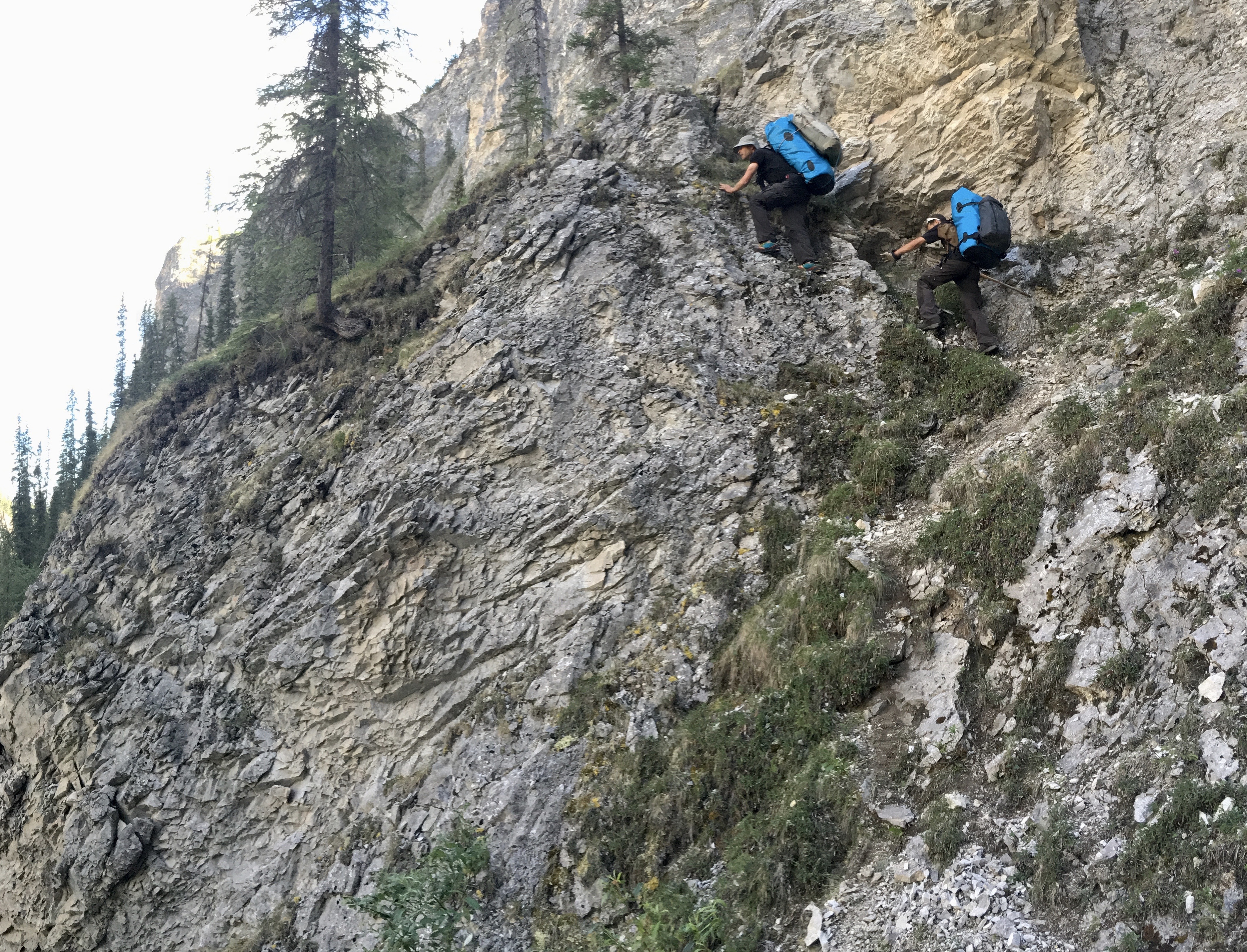 I had tried to circumvent this obstacle by portaging down the left side of the canyon with Mike Cragen in 2016. This was a mistake. After an hour of hiking with heavy packs, on scary precipitous ledges, we were cliffed-out and forced to retreat. This was the same cliff that Oliver, Ueli and I had brought climbing gear for. Our objective was to reach the Eye of the Needle––the largest arch in the valley––it stood like a sentinel on the canyon rim overlooking the gorge. There was a distinct possibility that no one had ever been there before.