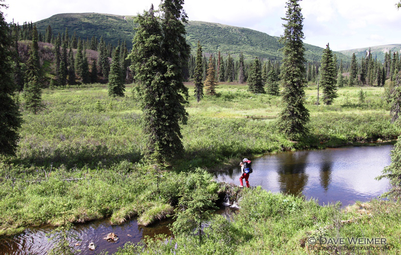 Making our way up Aiyagomahala Creek. Shot Tower in the background. There are some natural hotsprings in the valley but if you visit in the summer the area is infested with mosquitos.