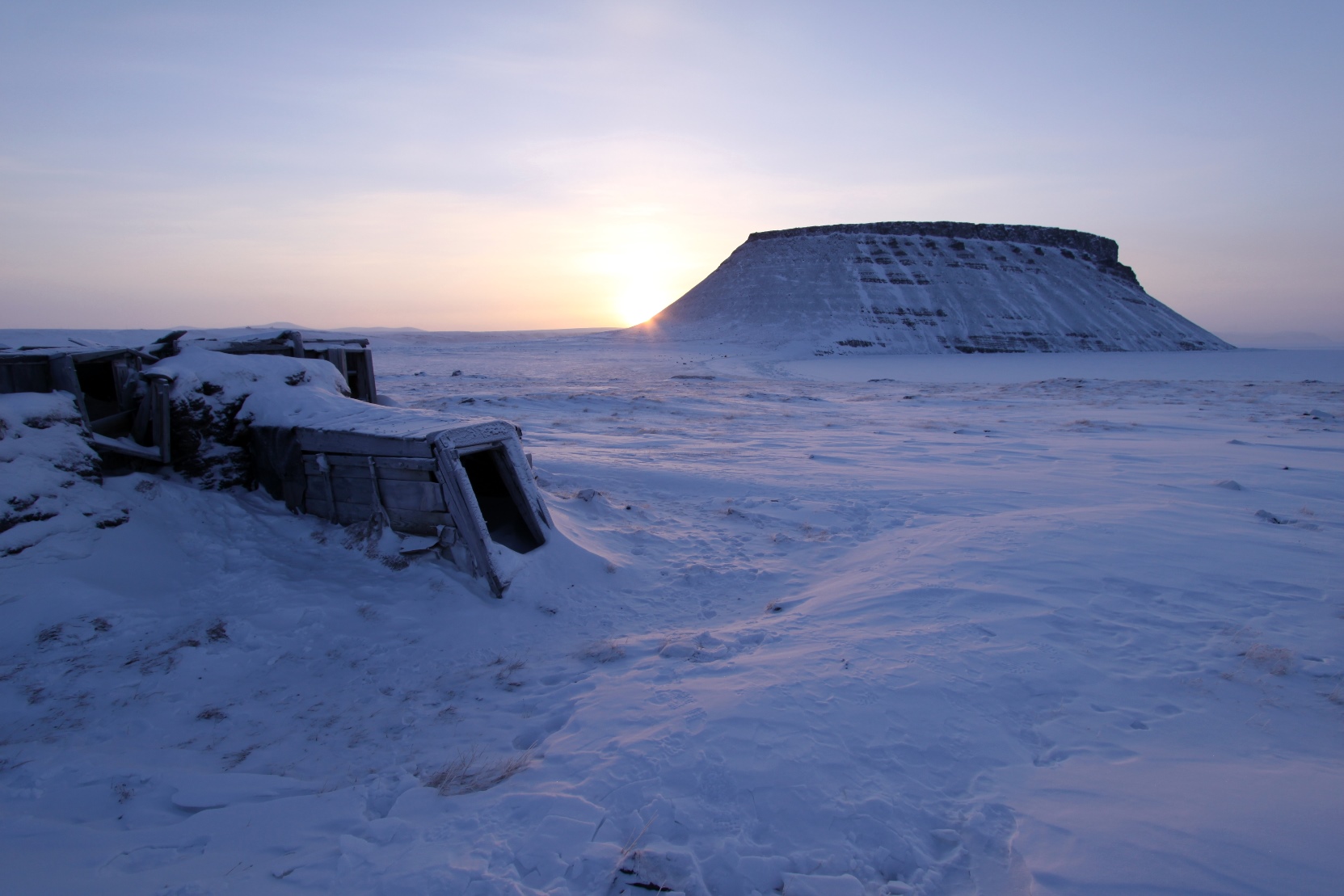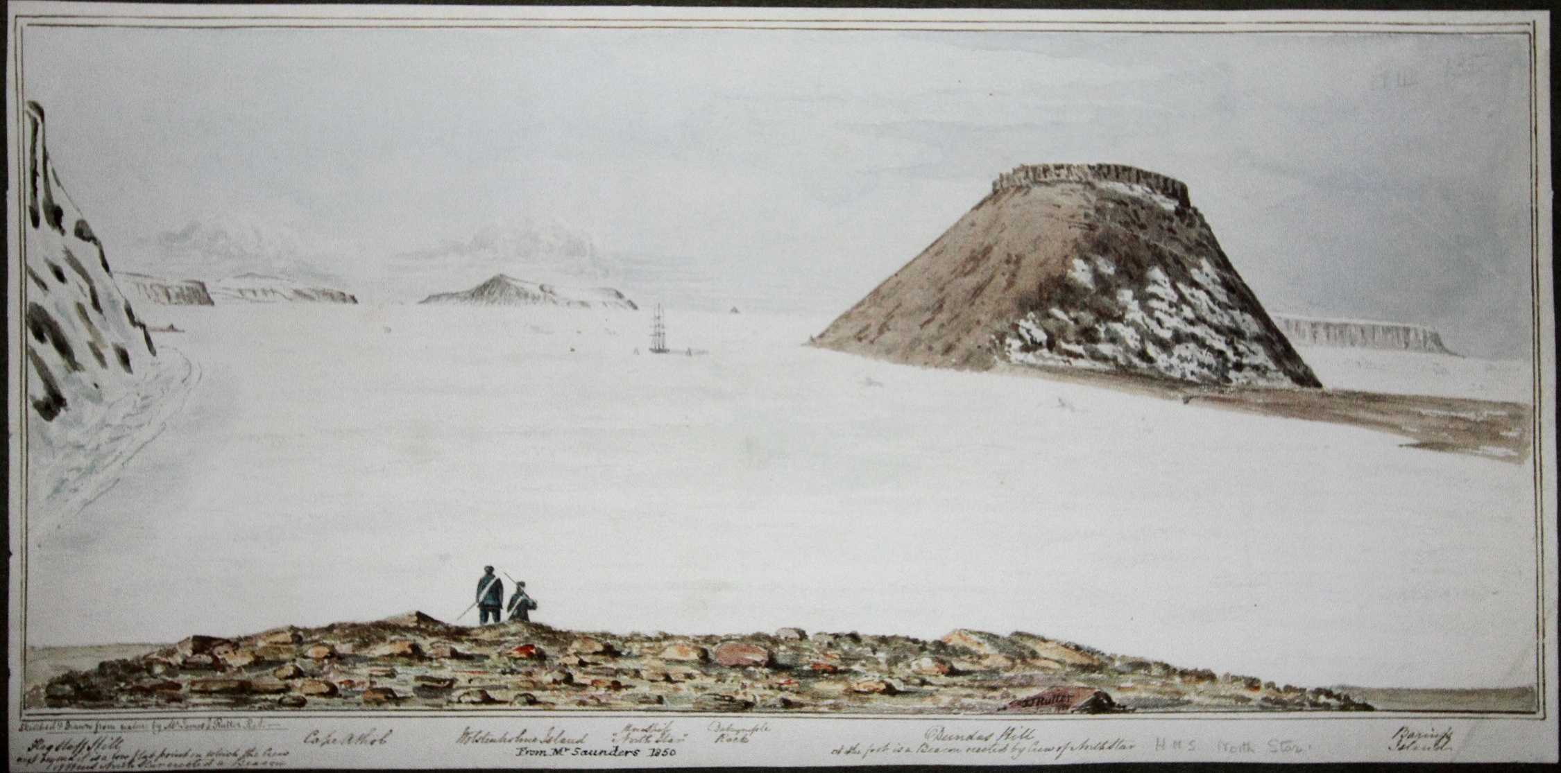 Despite their remote location, it must have come as a surprise when the men discovered they had neighbors. A small family of Inuit lived in a sod igloo near the base of the table-topped mountain (which the sailors called Dundas Hill and the natives called Umanaq) and another family lived about 12 miles up the fjord.